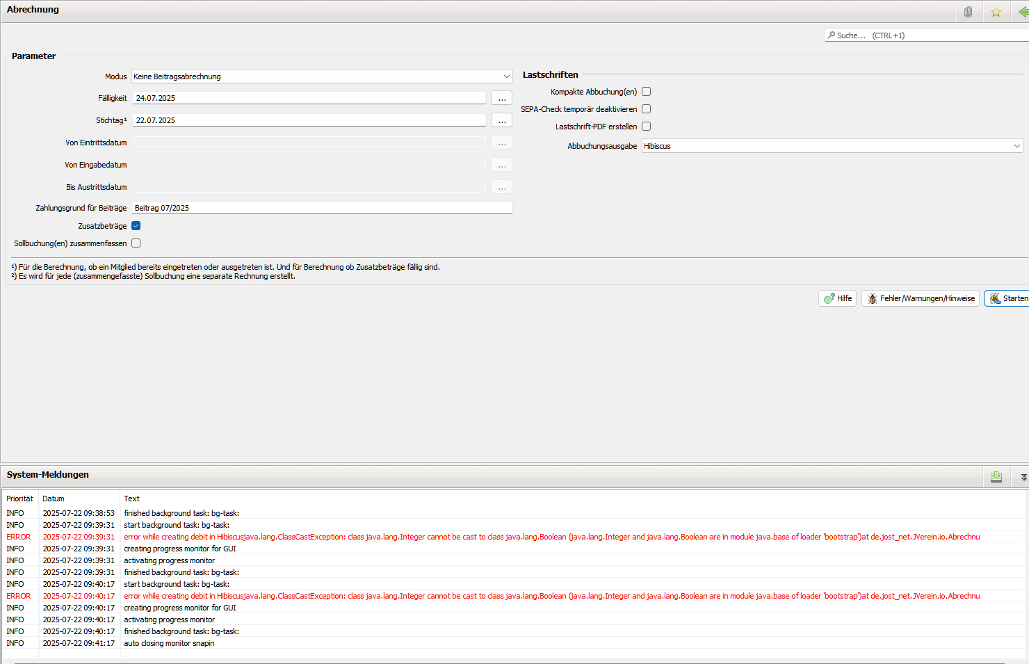 Re: OpenJVerein 3.1- Fehler bei Lastschrift-Erstellung