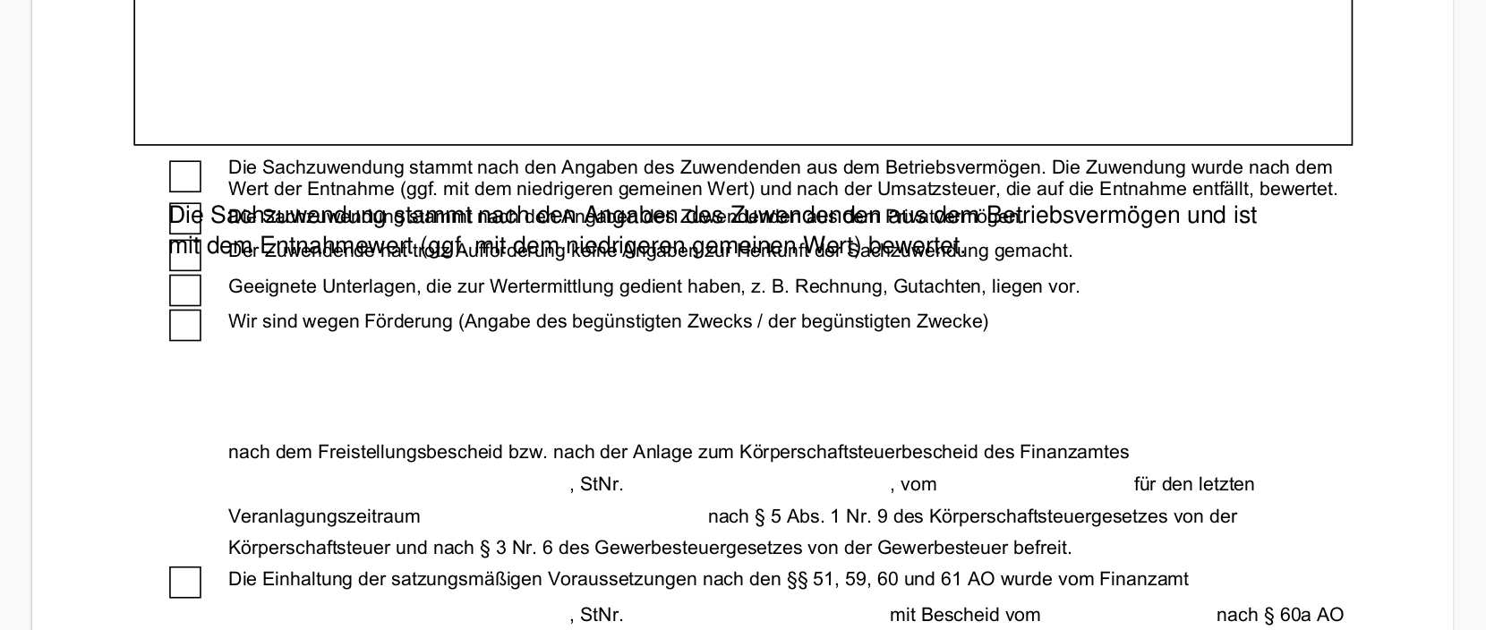 Sind denn der Ort, Finanzamt, der begünstigte Zweck etc. in den Einstellungen unter Allgemein und Steuerbescheinigungen eingetragen?Harkoester hat geschrieben: Samstag 12. April 2025, 06:57 Es gibt massive Fehler bei den Formularen der Spenden etc