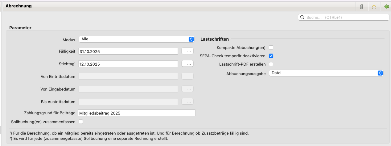 1. wichtig ist die "Fälligkeit", an diesem Tag wird eingezogen