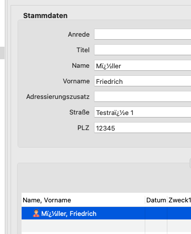 Nur die Umlaute bereiten enorme Probleme. Die 1. Umstellung erfolgte über ein Python-Script. Ich habe verschiedene Codecs ausprobiert und natürlich auch IOS-8859-1, leider alles ohne Erfolg - in JVerein werden die Umlaute je nach Exportformat verschieden falsch/kryptisch dargestellt. Öffne ich die Datei z.B. mit Excel werden alle Umlaute richtig dargestellt, je nach vorherigem Export über Python danach auch mal kryptisch. Auch alles ohne Erfolg. Das selbe gilt für ähnlicher Versuche unter Windows 11 mit Excel oder mit LibreOffice unter MacOS. Ich sehe dafür: